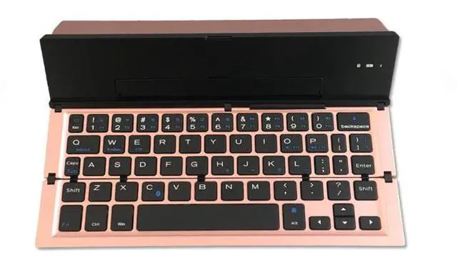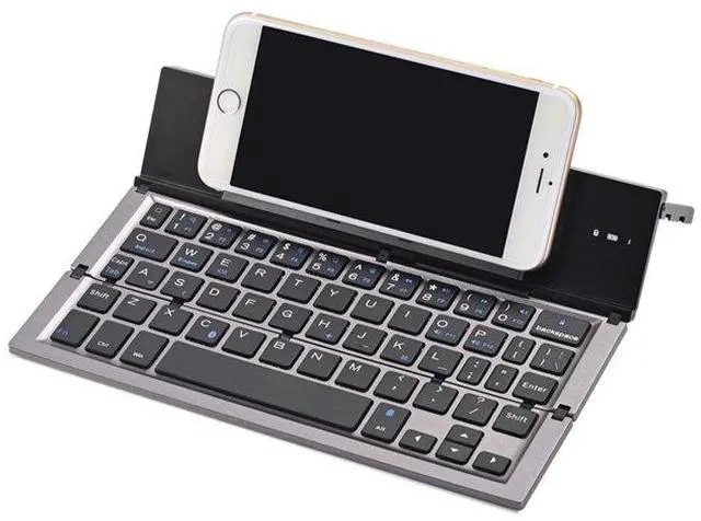 Triple-fold mobile tablet with aluminum body, Bluetooth keyboard, compatible with IOS, Android and Windows operating systems. Suitable for all three systems.