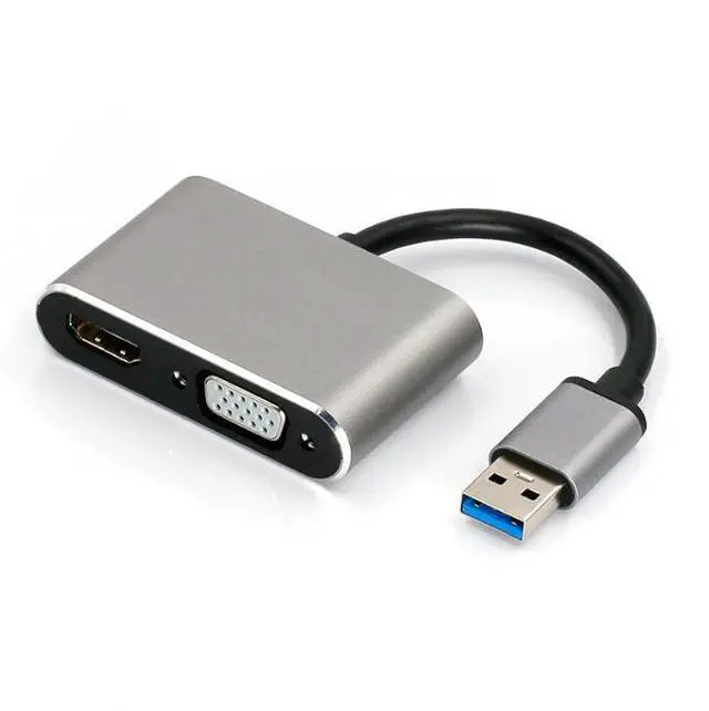 USB 3.0 to HDMI + VGA Converter - Dual Function Switching Device for Mini Display with Multiple Interfaces for 1080P Resolution