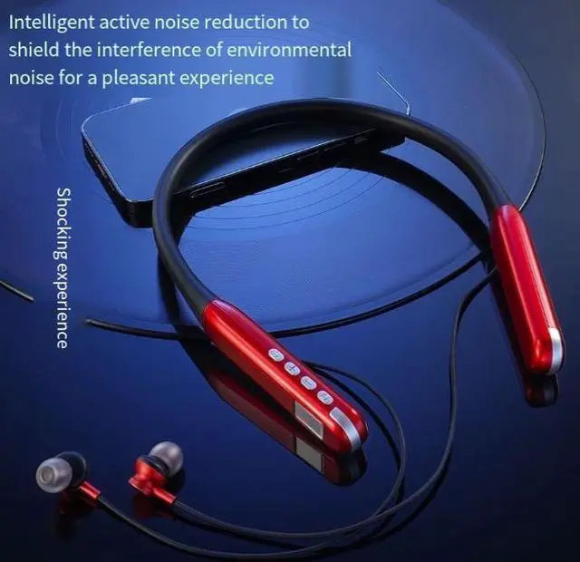 Ultra-long battery life, high-capacity Bluetooth headphones, wireless, neck-mounted, sports-friendly, water-resistant, new model, dedicated for running, high-quality sound Red