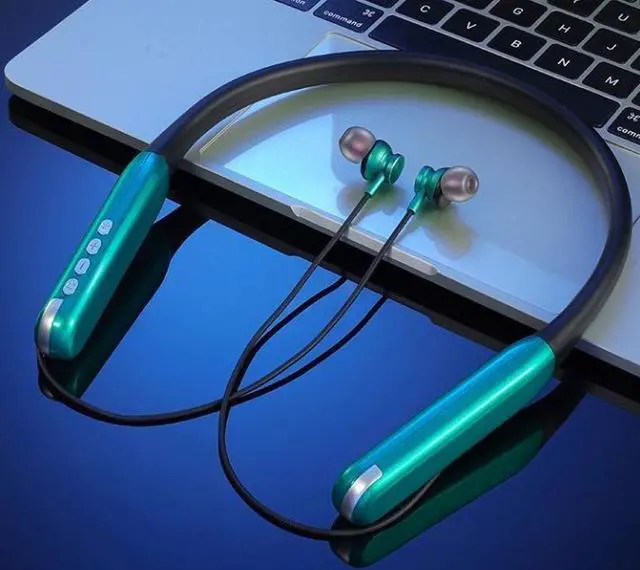 Ultra-long battery life, high-capacity Bluetooth headphones, wireless, neck-mounted, sports-friendly, water-resistant, new model, dedicated for running, high-quality sound Green
