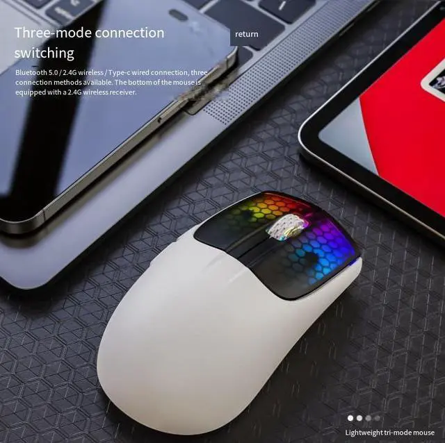 Three-mode wireless mouse, lightweight, for esports gaming, Bluetooth wireless connection