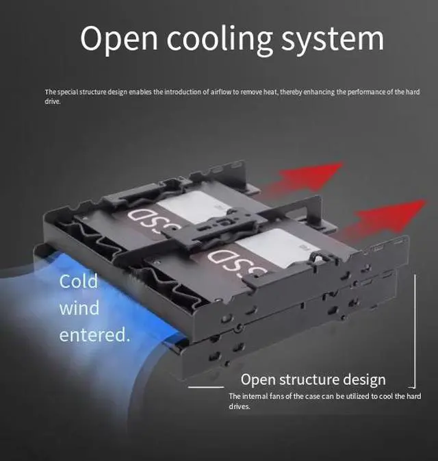 Open cooling system The special structure design enables the introduction of airflow to remove heat, thereby enhancing the performance of the hard drive.