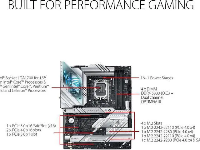 ASUS ROG Strix Z790-A Gaming WiFi D4 LGA1700(Intel®13th&12th Gen) ATX Gaming Motherboard(16+1 Power Stages,DDR4,4xM.2 Slots, PCIe® 5.0,WiFi 6E,USB 3.2 Gen 2x2 Type-C® with PD 3.0 up to 30W)
