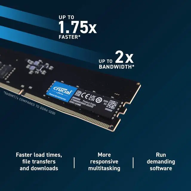 CT2K16G52C42U5 is the Crucial 32GB kit consisting of (2) 16GB desktop modules that operate at the speed of 5200MHz and has a CAS Latency of 42. It is an UDIMM and conforms to the industry standard DDR5 UDIMM layout of 288 pins. It is compatible with systems that can take DDR5-5200 UDIMM memory.