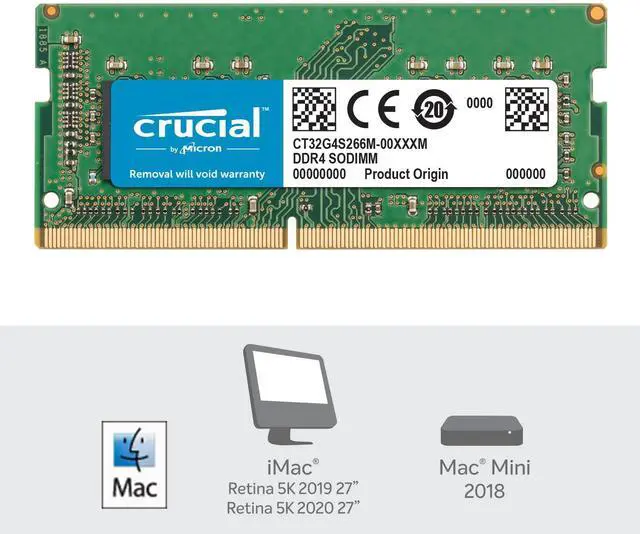 • Crucial 32GB DDR4 2666 MT/s PC4-21300 SODIMM Memory Module for Mac