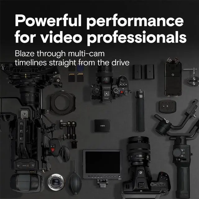 Crucial X10 Pro SSD: the portable drive that packs a palm-sized punch. Blaze through workloads and even edit, trim and render directly from the drive. The Crucial X10 Pro is the perfect partner in the studio or in the field, giving you raw performance, lasting durability, and generous capacity