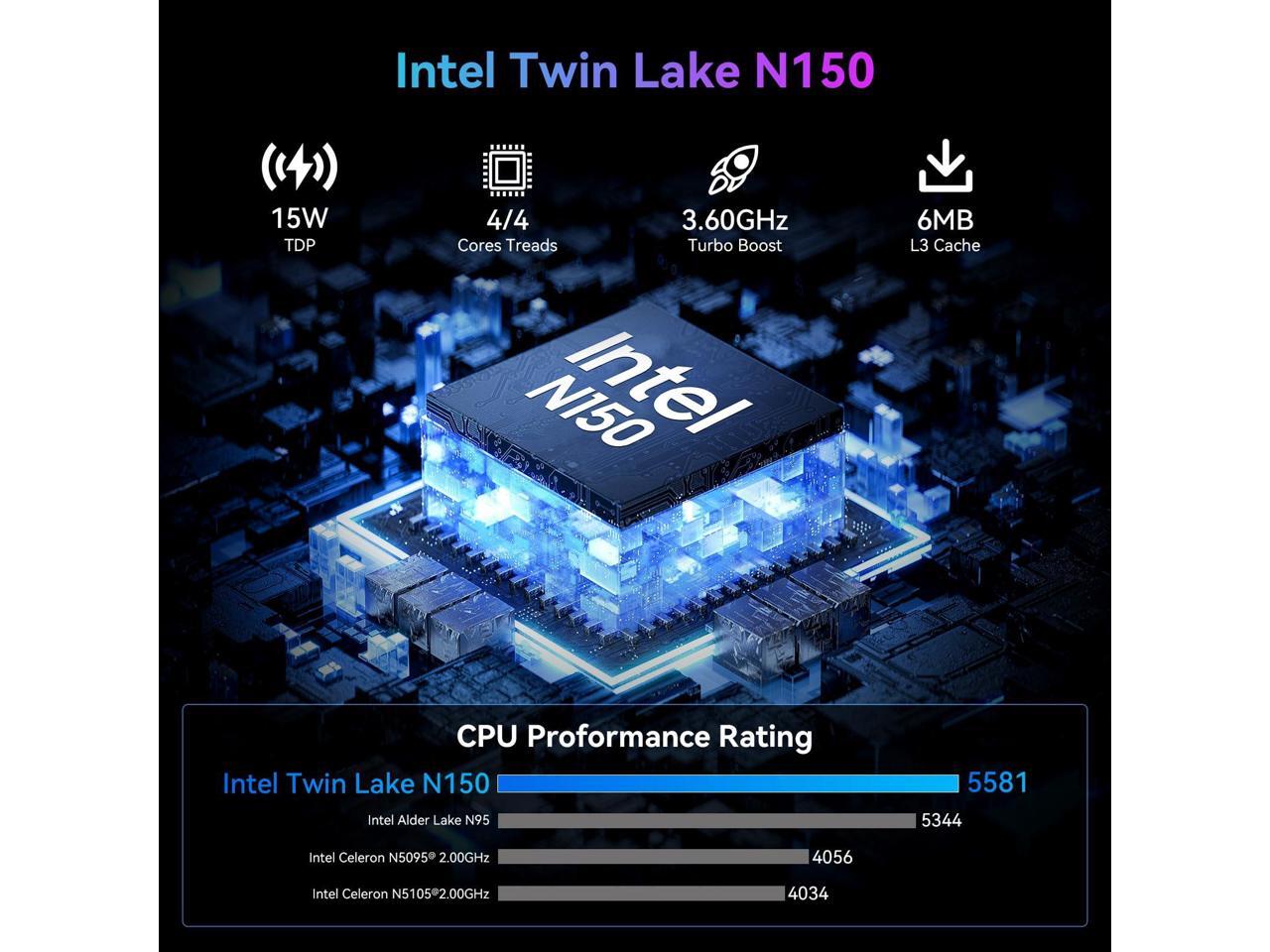 - Powerful Performance for Multitasking - Experience a new level of efficiency with the Blackview MP60 Mini PC. Equipped with an Intel N150 processor and 16GB DDR4 RAM, it handles your daily workloadfrom complex spreadsheets and numerous browser tabs to video conferenceswith effortless ease. The 1TB(up to 2TB) PCIe SSD delivers lightning-fast boot times and rapid file access, ensuring a smooth and responsive experience for all your home office needs.