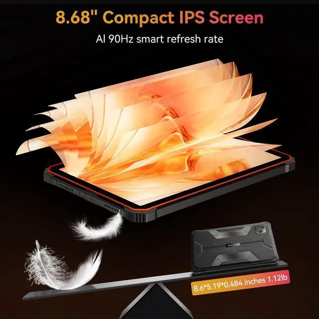 ^^ Comprehensive Connectivity: Dual-band WiFi (5GHz/ 2.4GH z) ensures stable wireless access wherever you go. OTG Support lets you connect USB drives, tools, or other peripherals with ease. 8GB RAM with memory expansion technology supports an extra 16GB virtual extension. Moreover, this AI tablet has 128GB UFS high-speed storage and also supports TF card expansion, letting you easily expand storage beyond 128GB for more maps, videos, or work files. Running on Android 15, the Tablet Active 5 ensures smooth multitasking like running navigation, music, and logging apps simultaneouslyperfect for seamless outdoor adventures and efficient work. ^^ Durable Build for