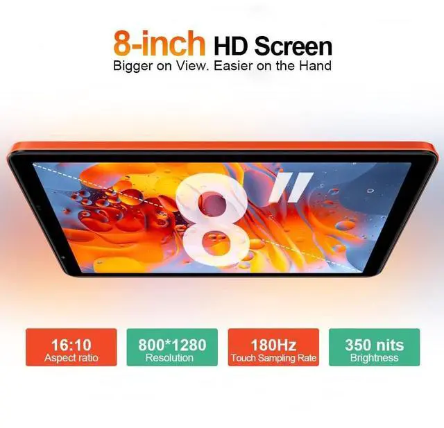 The Perfect 8-Inch TabletMeet the perfect balance of portability and performance with our latest blackview ZENO 1 8-inch tablet. Designed for life on the go, its sleek, ultra-slim 8.2 mm profile and compact 198.6 x 125.9 mm frame feels incredibly light in your hand and slips effortlessly into a bag. The vibrant 8-inch screen delivers stunning visuals for work, web browsing, and your favorite shows, all wrapped in a sophisticated, remarkably thin design that you'll love to carry everywhere. ^^ 4G LTE Calling 18GB+256GB CapacityEquipped with dual 4G LTE and VoLTE support, the Blackview ZENO 1 tablet connects via 4G LTE in environments without Wi-Fi.