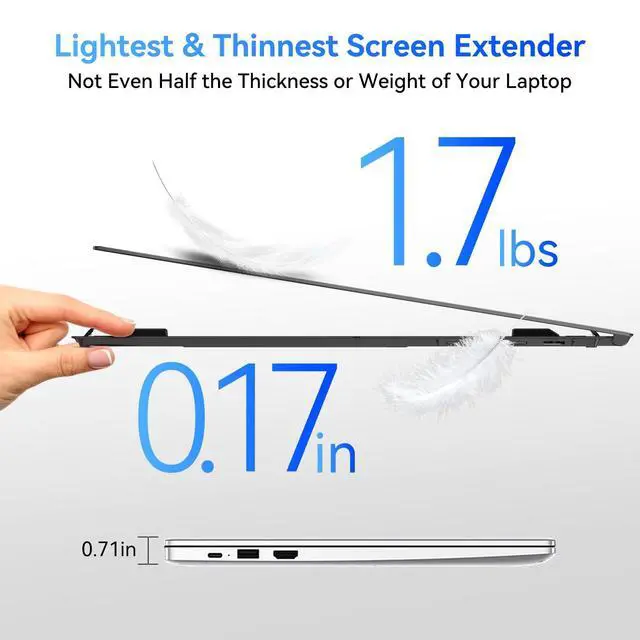 - & -, %,: The Blackview SCM8 laptop screen extender weighs only 1.7 lbs and features a 0.17 in ultra-thin screen. It truly defines what a lightweight portable extended screen should be, unlike others that can be even heavier than the laptop itself double screens, double weight or even more. This all-in-one integrated workspace perfectly meets the needs of mobile office work.