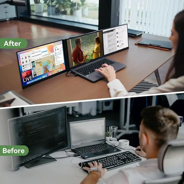 ^^ Triple laptop screen extender, Universal Compatibility & Plug-and-Play ConvenienceWorks seamlessly with 99% of devices! Compatible with Mac (M1/M2/M3), Windows, Android, Linux, and Chrome OSno drivers or extra software needed. Equipped with 2 full-featured USB-C ports and 1 PD USB-C port, it supports instant connectivity, fast data transfer, and 100W reverse charging to power your laptop while you work. All necessary cables are included in the package. ^^ DCM8 screen extender for laptop Durable Build & Ergonomic Design for ComfortCrafted with aerospace-grade aluminum alloy, the monitor is scratch-resistant, fingerprint-proof, and built to last.
