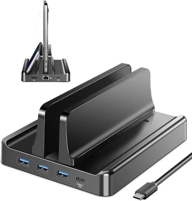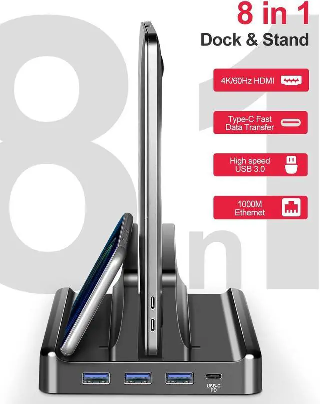 Vaydeer ABS Plastic Vertical Laptop Stand Laptop Holder with Type-C Port, Adjustable Notebook Docking Station Stand Compatible with Air, Pro, Dell, HP, Lenovo Laptops (Black).