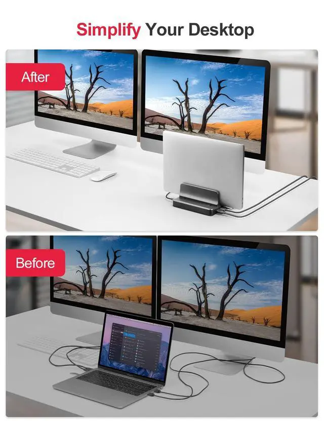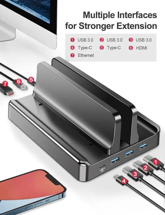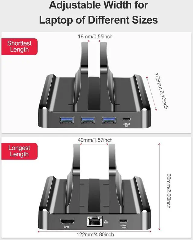 COMPATIBILITY & ANTI-SCRATCHES: Vaydeer laptop docking station is compatible with all laptops with a thickness of 10-40mm. And the flexible silica gel on the base protects the laptop risers from scratching, not only makes it anti-scratches, but also stable on the desk.