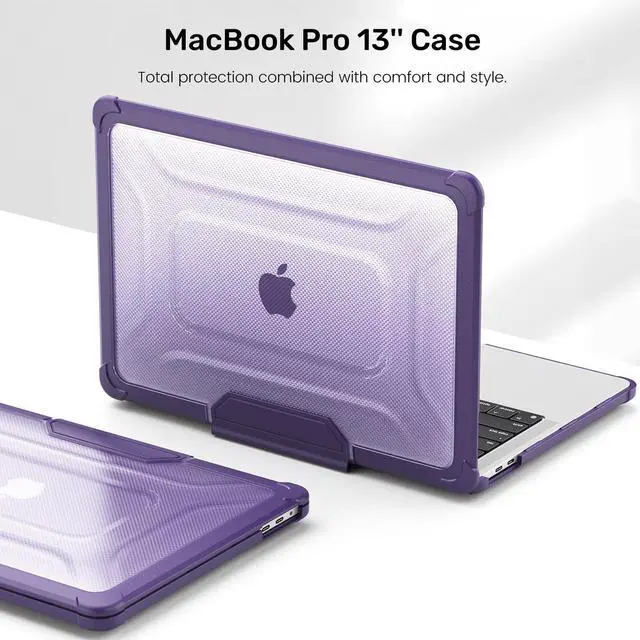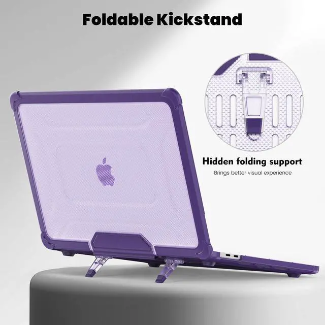 FOLDABLE KICKSTAND: 13 inch Shockproof Mac Pro Case built in fold-able kickstand which can offer you an ergonomic typing angles. Two-row of ventilation holes achieving better ventilation and maximum heat dissipation. Fully access to all contr