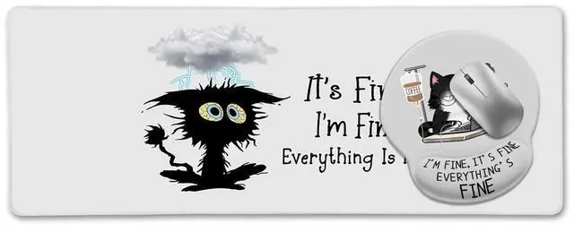 Funny Black Cat Large Desk Mat Ergonomic Mouse Pad with Wrist Rest Keyboard Mouse Pad for Desktop Computer Laptop Work Home Cute Cat Office Desk Accessories