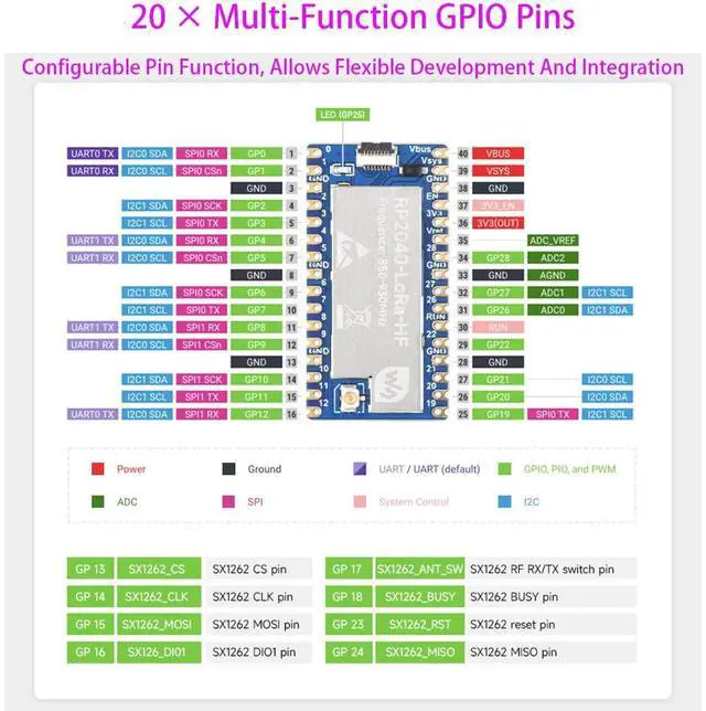 RP2040-LoRa adopts LoRa modulation technology to solve the problem in the traditional design solutions which can not balance distance, anti-interference, and power consumption at the same time. Combines with LoRa gateway for connecting Cloud Server such as TTN and ChirpStack for quick verification.