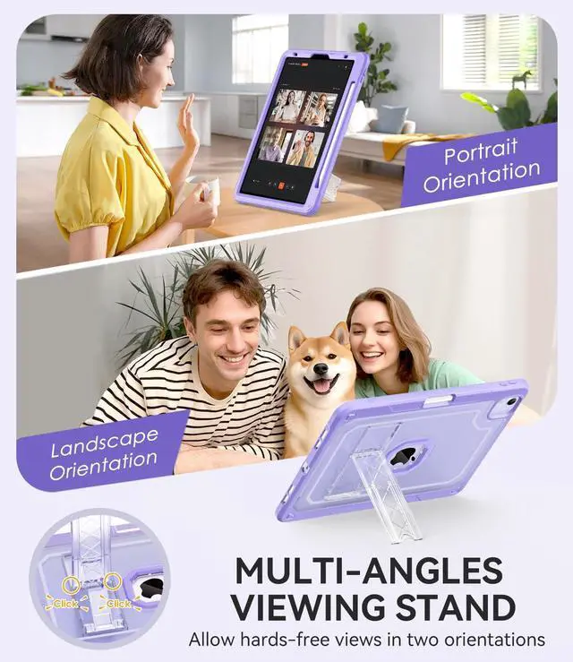 3. [Hands-Free] Built-in kickstand is convenient for watching videos, studying, conferences, construction in both landscape & portrait orientations without holding it by hand. 4. [Friendly For Everyone] Hold it comfortably and harmlessly. Sturdy and easy to carry, idea for student and artist friendly. 5. Built-in kickstand supports 65deg portrait and 45deg landscape orientations.