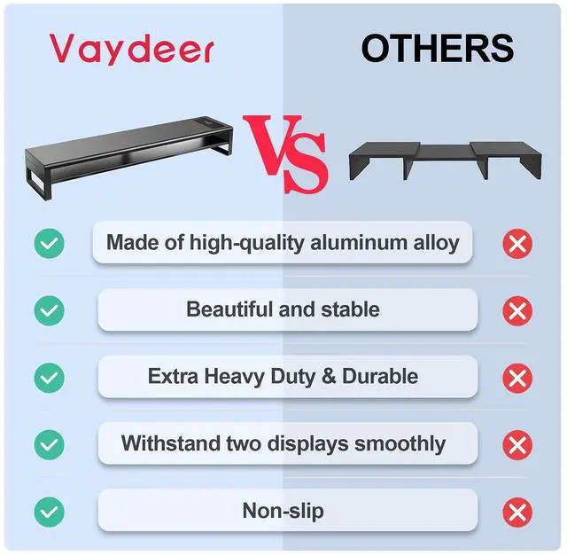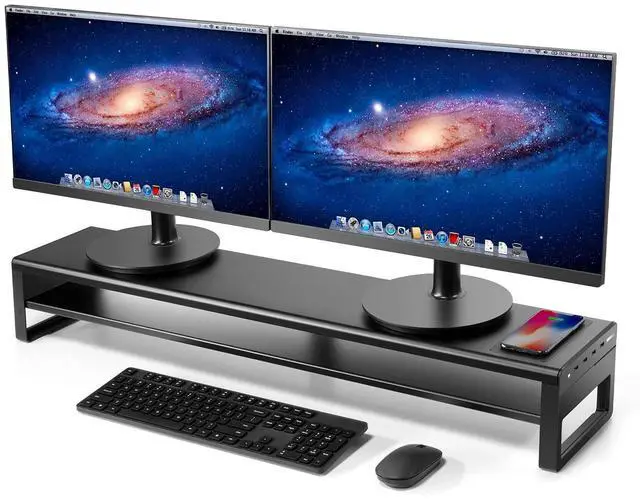 It also sustain your monitor with a storage room underneath for keyboard and mouse. ^^ Ergonomically DesignedThis Computer Stand raises your monitor for maximum comfort, getting the right screen and fixing the viewing distance. This dual monitor riser is perfect for home, office, school and college students, bringing more comfort as well as more space for your desktop.