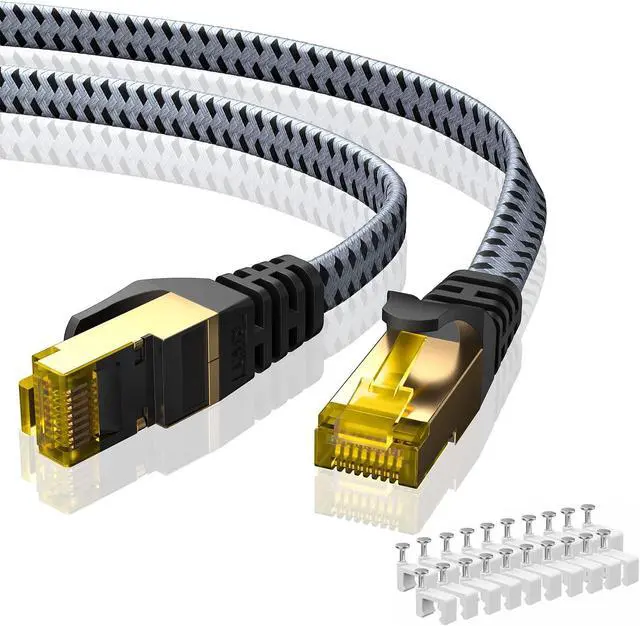 [(Excellent Anti-Interference Design)] Our Cat 8 ethernet cord are made of 4 pairs foiled twisted pair (STP) copper wires with 24K gold-plated RJ45 connectors. By this design, the cat8 network cable can better protect the signal quality and prevent problems such as crosstalk, noise and interference, making network speed faster and more stable.