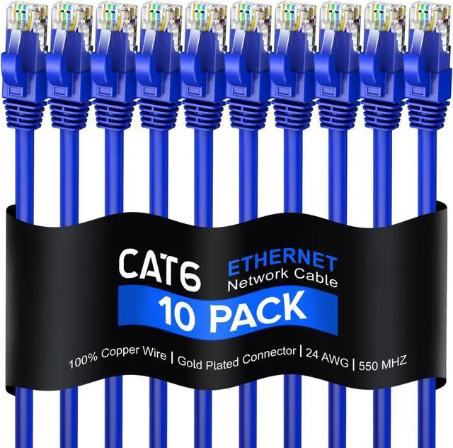Maximm Cat 6 Ethernet Cable 10 Ft, 100% Pure Copper, Cat6 Cable (10 Pack) LAN Cable, Internet Cable, Patch Cable and Network Cable - UTP (Blue) 10 Feet
