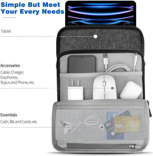 For Convenient Storage: One main compartment for a tablet, the additional front pocket storage space keep the smaller items well-organized, such as your pens, cables, mouse, earphone, mobile phones, accessories and important business essentials. A top opening zipper gliding smoothly and allows convenient access to your device.