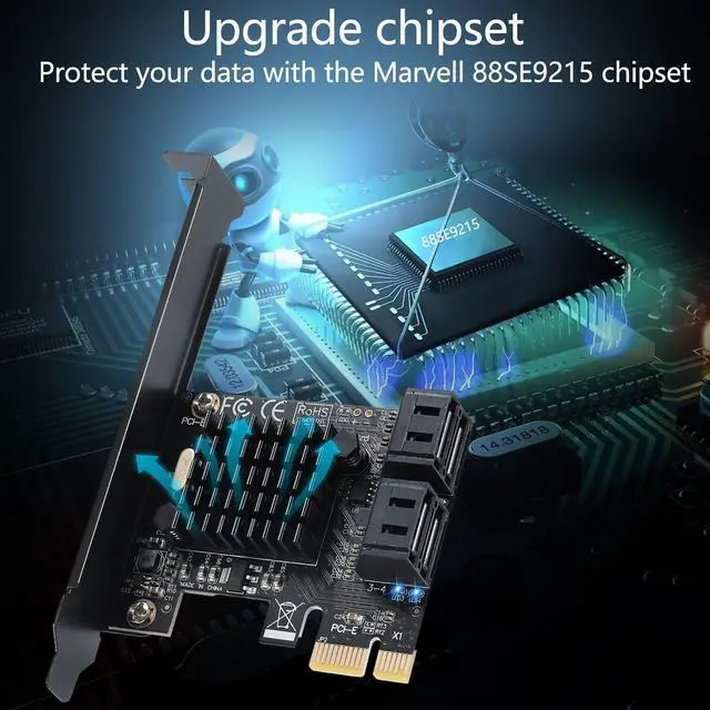 Security and stability: Marvell 88SE9215 chipset to improve the stability and security of PCIE SATA cards. A heatsink is included for good temperature control to prevent damage caused by high temperatures.