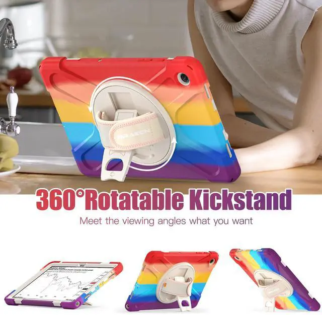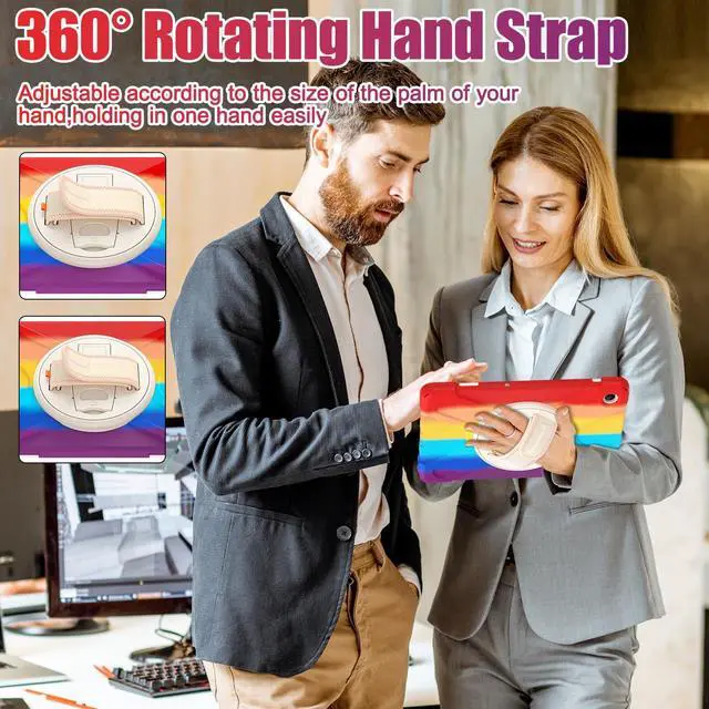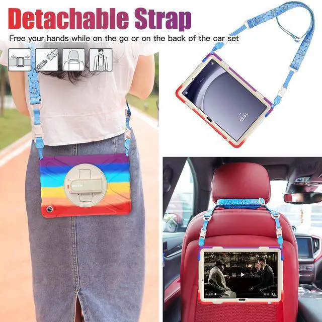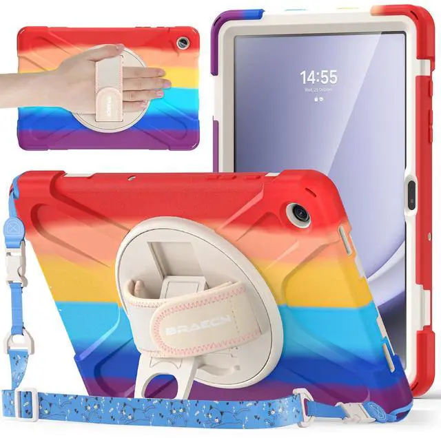 360deg Rotating Hand Strap & Stand: The Protective Samsung Galaxy Tab A9+ Plus Case built-in 360deg Rotatable Hand Strap & Kickstand on the back, flexible in Vertical & Horizontal any other angles ideal for watching video, reading or teaching, maximinzely free your hand. Adjustable Hand Strap perfectly suitable uses for all size of hands, adults, students, child