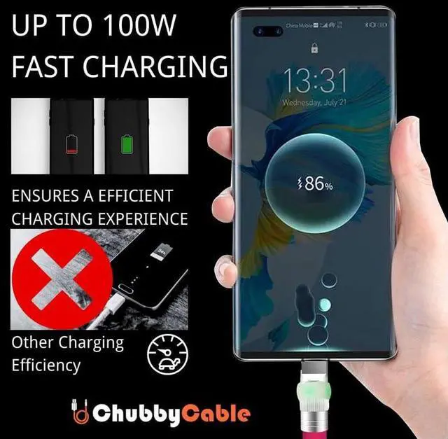 TRUE FAST CHARGING & DATA TRANSFER: Equipped with a certified E-Marker chip, ChubbyCable guarantees the safest 100W fast charge, ensur
