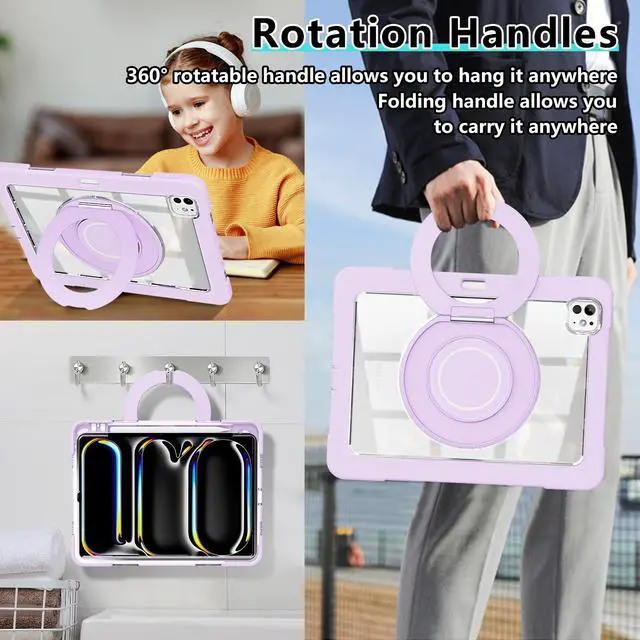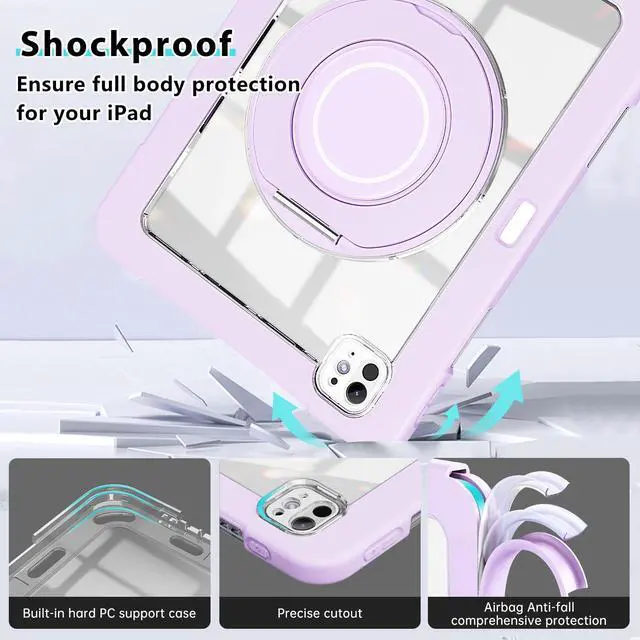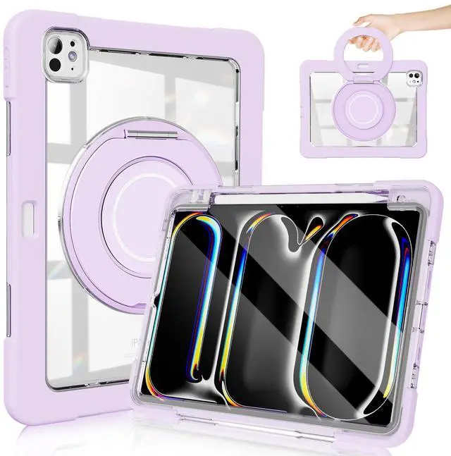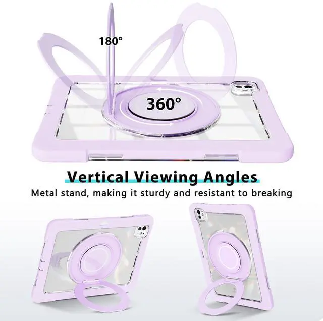 for iPad Pro 11 Inch Case 2024 5th Generation (M4) - with Pencil Holder/Screen Protector/Rotating Stand, Clear Shockproof Rugged Protective Cover for iPad Pro 11 5th Gen (Purple)