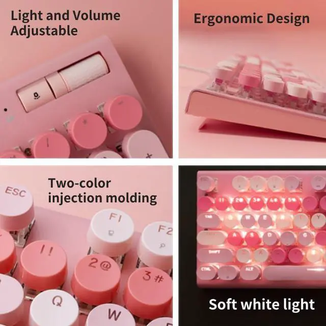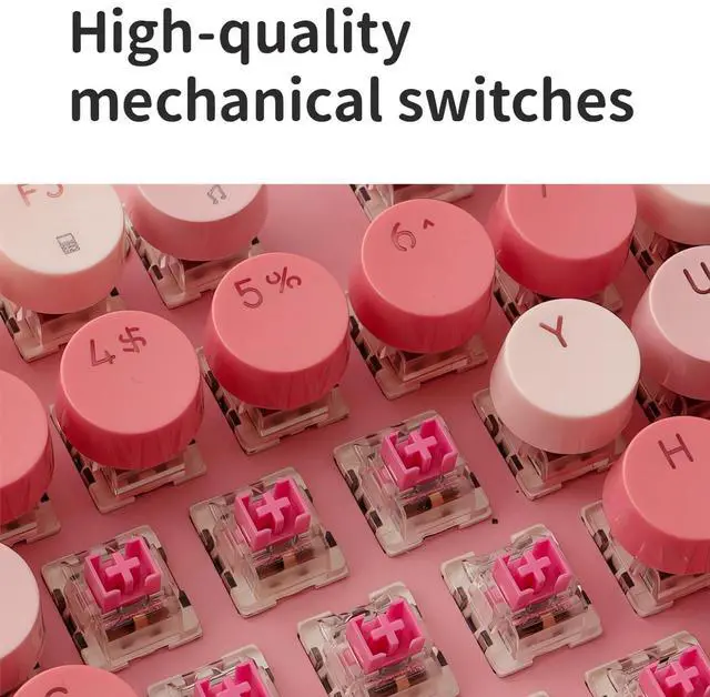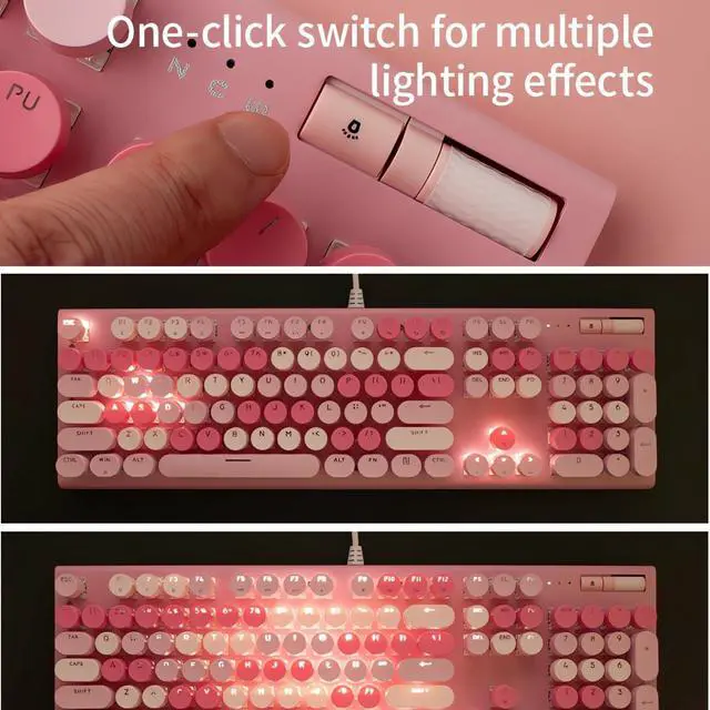 Clicky Typing Sound: A perfect blend of classic typewriter aesthetics with modern keyboard technology. This clicky keyboard use the pink switch, delivers the old-fashioned "click" feel of a royal typewriter, giving you confident typing
