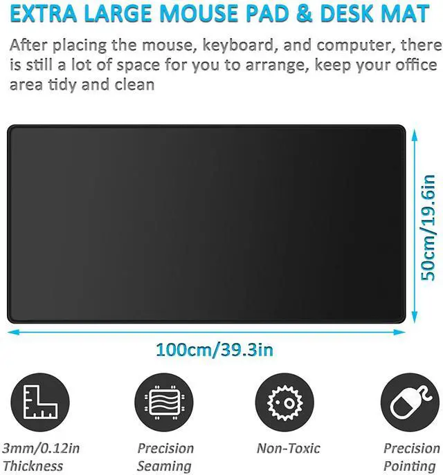 The anti-fraying stitched frame prevents deformation and extends the lifespan and appearance of the extra large writing pad, making it more durable. Our 0.12" thick desk mouse mat gives your wrists and hands ease, which offers comfortable gaming or working.