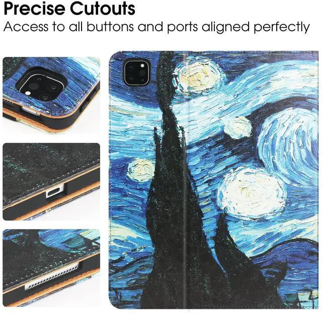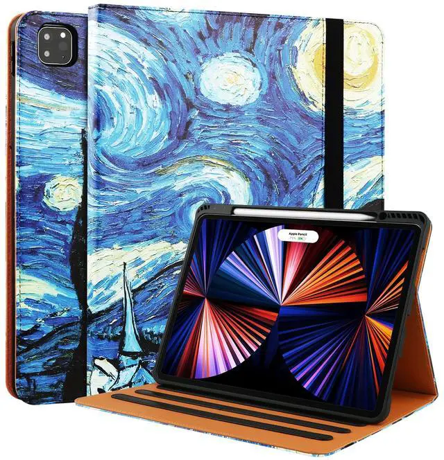 for iPad Air 5th Generation Case 2022/ 4th Generation 2020 10.9 Inch with Pencil Holder, Folio Stand Leather Cover with Multiple Angles & Auto Sleep/Wake for iPad Air 5/4 Case, Starry Night