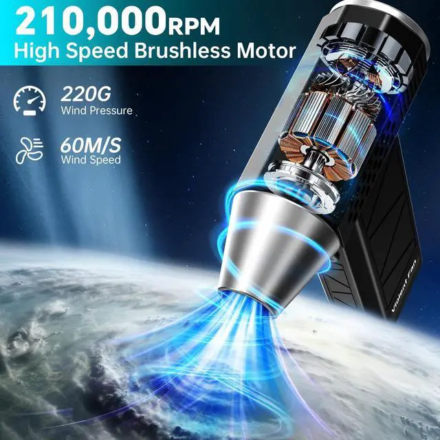 Extremely Powerful & Fast Cleaning: This electronic air duster features a high-speed 210,000 RPM turbo fan, delivering strong airflow that removes dust and debris in seconds. It's perfect for quickly and efficiently cleaning keyboards, electronics, and more.