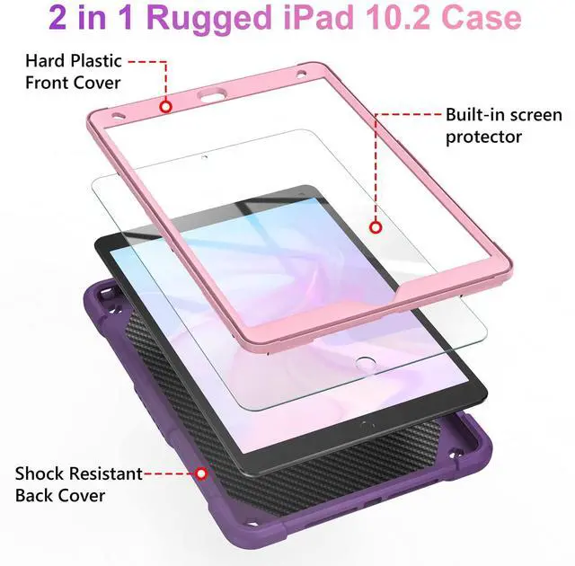 VOFUOE for iPad 9th 8th 7th Generation Case with Screen Protector Butterfly Stand Shoulder Strap Keychain Pencil Holder for iPad 10.2 Hard Cover Kids Girls for iPad 9th/8th/7th(2021/2020/2019)-Purple
