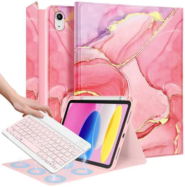Wazzasoft for iPad 10th Generation Case with Keyboard - for iPad A16 Cases Pencil Holder 10.9 Inch Cover Women Girls Cute Girly Marble Unique Design Funda for Apple Tablet 10th/11th gen
