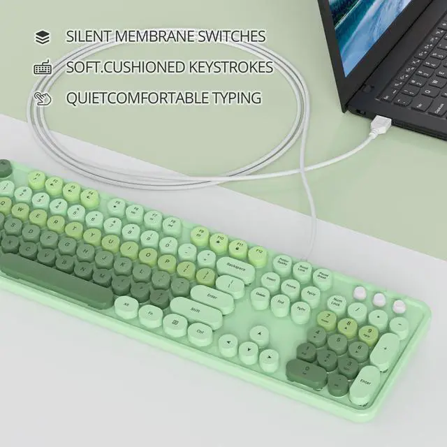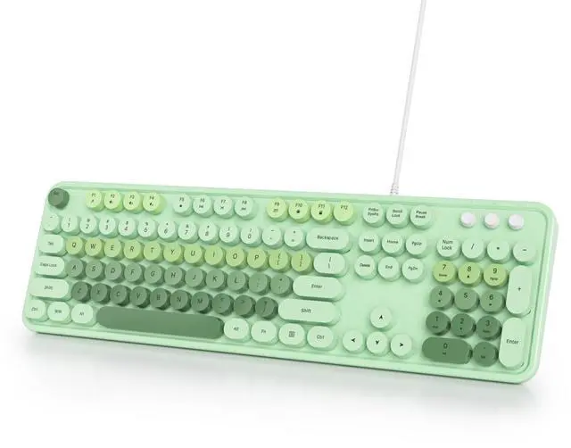 [(Cute Green Wired typewriter Keyboard)] The most cute green theme keyboard with green color, attracts more people's attention, gives you a different vision, enjoys a different keyboard experience, creates a colorful desk, and brings you a happy mood!