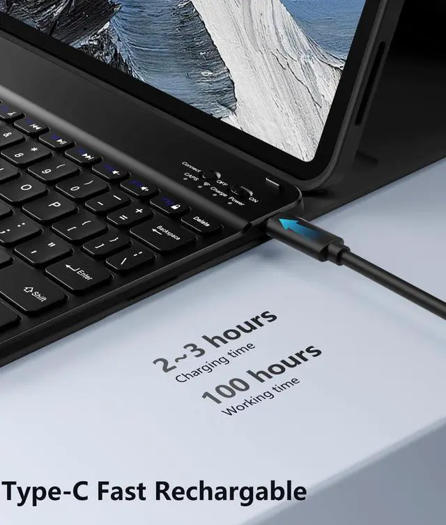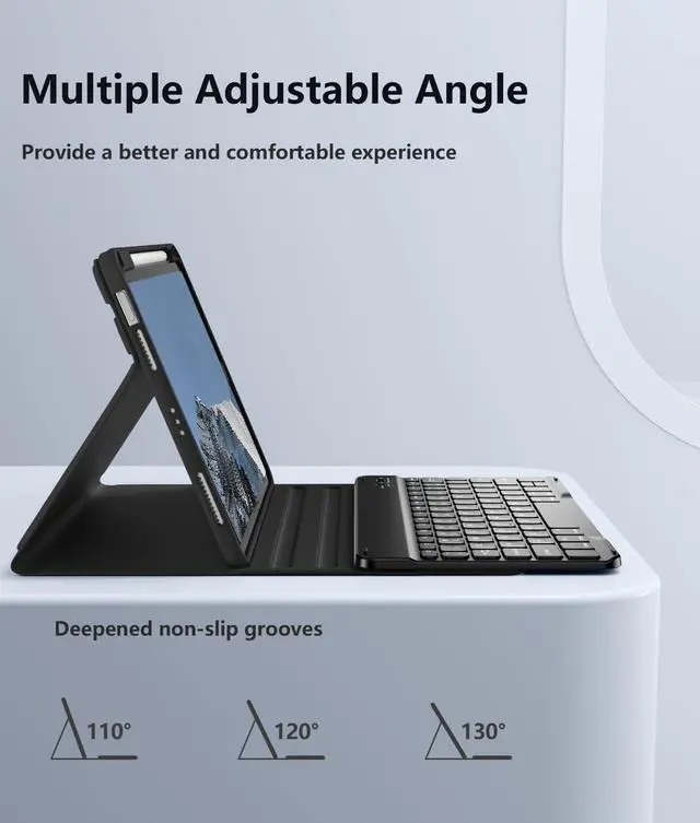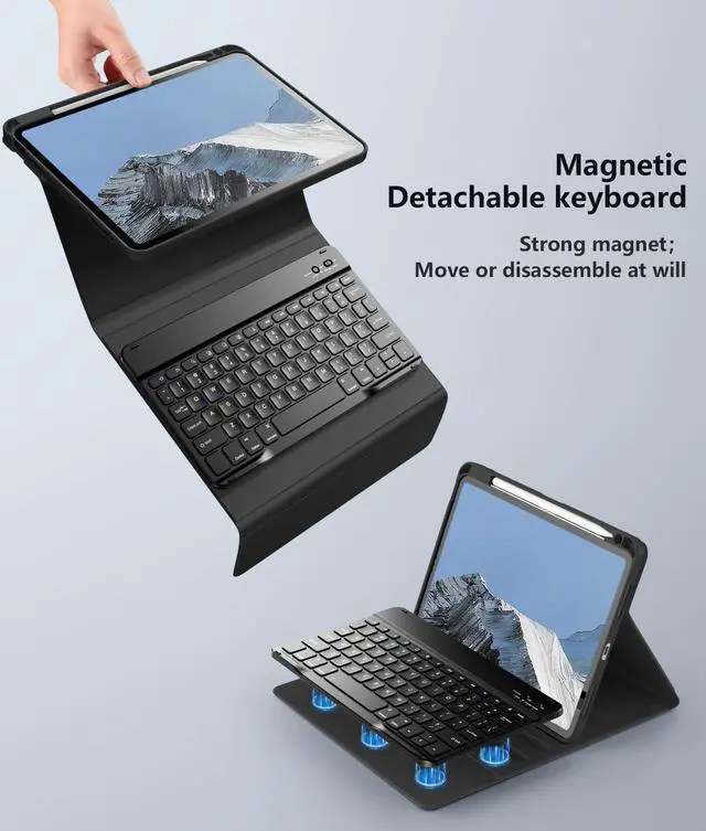 Magnetic Detachable Bluetooth Keyboard: For iPad Air 11 inch case with keyboard comes with a magnetic detachable lightweight Bluetooth keyboard. The wireless keyboard pairs with your tablet quickly via BT connection, and magnetically firmly attached to the case, which makes your tablet instantly become a portable laptop. You can also move the keyboard position or remove it as needed, which is easy for you to carry when you need to go out or travel