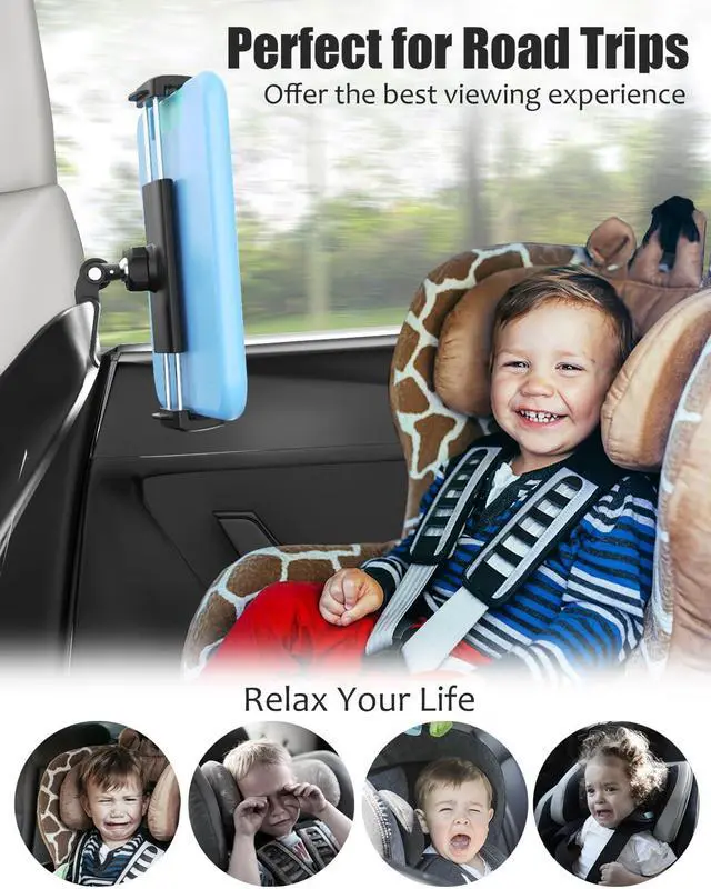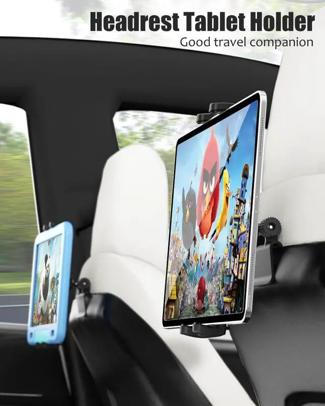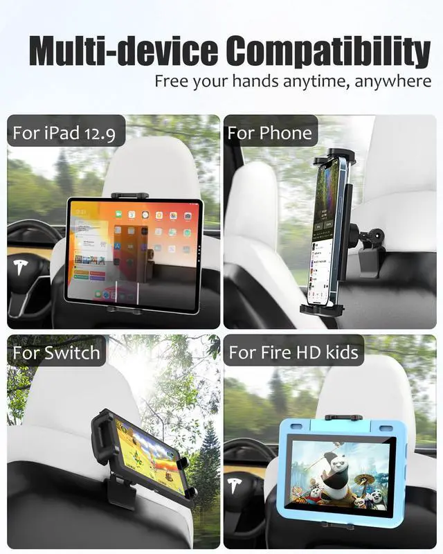[(Wide Compatibility)] Tesla Headrest tablet mount adjustable clip fits all 4-13'' devices. The clip size 4.7-9.64'' (11.93-24.5cm), Thickness 0.7'' (1.8cm), which makes the clip work with or without a case Can hold on tightly. Such as iPad Pro 12.9/11/10.5/9.7", iPad Mini (5, 4, 3, 2, 1), iPad Air (5, 4, 3, 2, 1), iPad (8th 7th 6th 5th), iPad 2019/2020/2021; Switch;