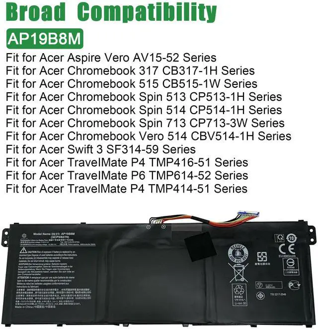 JIAZIJIA AP19B8M Laptop Battery Replacement for Acer TravelMate P4 TMP414-51 TMP416-51 P6 TMP614-52 Swift 3 SF314-59 Chromebook CB317-1H CB515-1W CP513-1H CP514-1H CP713-3W Series 11.61V 55.97W h