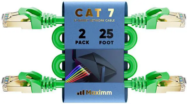 Cat 7 Ethernet Cable 25 ft - (2 Pack) High-Speed Cat7 Internet & Network LAN Patch Cables, RJ45 Connectors - Perfect for Gaming, Streaming, and More (Green)