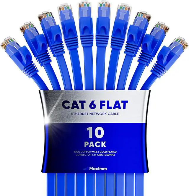 Cat6 Ethernet Cable 25ft, 10-Pack Blue - Flat High-Speed Network Cables for Gaming, Streaming, Router, Modem, PC, PS5, Xbox - Durable & Space-Saving Design