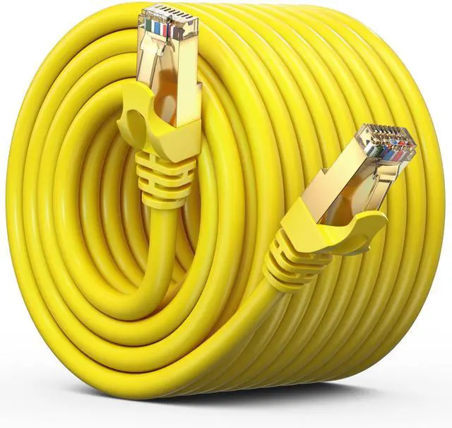 Cat7 Ethernet Cable 100 ft High-Speed LAN Internet Patch Cord, Flat Design, RJ45 Gold-Plated Connectors, 600MHz, 10Gbps for Gaming, Streaming, Modem, Router Yellow