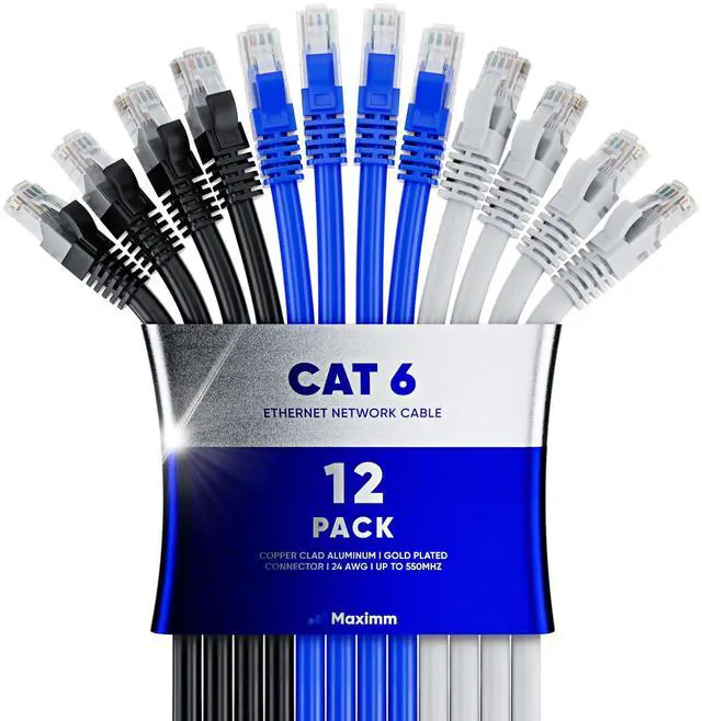 Maximm Cat 6 Ethernet Cable 4 Ft, (12-Pack) Cat6 Cable, LAN Cable, Internet Cable, Patch Cable and Network Cable - UTP (Tricolor) 4 Feet ethernet Cord