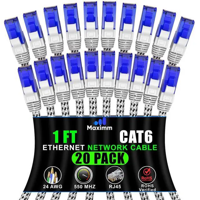 FAST ETHERNET CABLE. Maximm's cat6 ethernet cable with data transfer of up to 1000 Mbps and bandwidth of 250 MHz makes it your go-to LAN cable for gaming and streaming. This ethernet cable, 1ft connects devices over short distances without getting in the way. ^^ BRAIDED ETHERNET CABLE FOR LONG YEARS OF USE. Unlike ordinary cables, this interlaced White ethernet cable can withstand numerous bending with its high-quality braided nylon material. This internet cable is proven resistant to at least 1000 times of bending without signs of breaking. ^^ HIGH-GRADE CAT6 CABLE.
