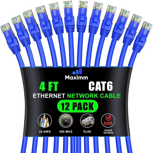 Maximm Cat 6 Ethernet Cable 4 Ft, (12-Pack) Cat6 Cable, LAN Cable, Internet Cable, Patch Cable and Network Cable - UTP (Blue) 4 Feet ethernet Cord