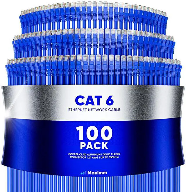 Maximm Cat 6 Ethernet Cable 0.6 ft (100-Pack) - High-Speed LAN Cable, Internet Cable, Patch Cable, and Network Cable - UTP, 10Gbps, 550MHz Ethernet Cord - Blue
