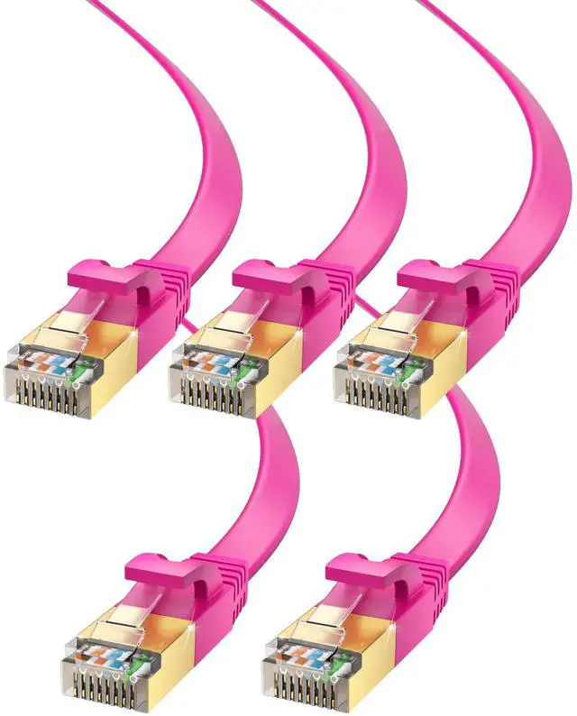 Maximm Cable CAT7 Flat Ethernet Cable, 5 Pack (Pink, 20ft) 10 Gbps, 600 MHz, Shielded RJ45 Gold Connectors Ultra-Thin Flexible Design for Home & Office Networking