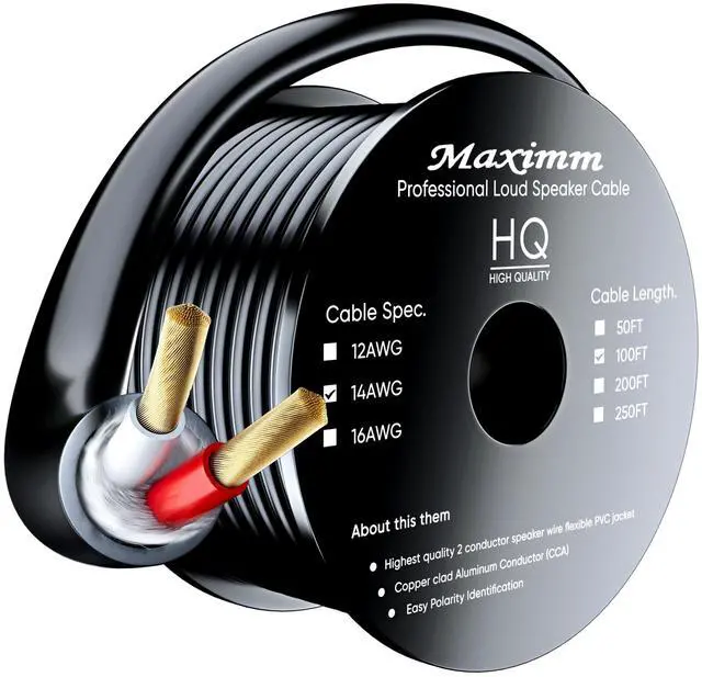 PROFESSIONAL QUALITY SPEAKER WIRE: Maximms professional grade 2-Conductor in wall speaker wire. Connect speakers to AV receivers and amplifiers for crystal clear clarity and maximum conductivity. ^^ 14
