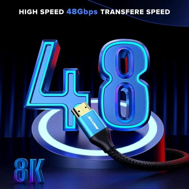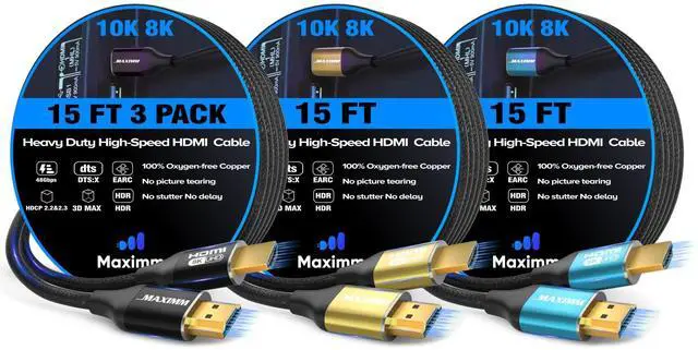 8K Ultra HD Performance Supports 8K60Hz and 4K120Hz for superior gaming and viewing. ^^ HDMI 2.1 Certified Delivers 48Gbps bandwidth for fast, seamless transmission. ^^ Gaming Ready Compatible with PS5, Xbox Series X/S, Fire TV, Apple TV, and more. ^^ Premium Build Gold-plated connectors, anti-corrosion, tangle-free design. ^^ Multi-Pack Available in different sizes, colors, and pack counts for organized setups.