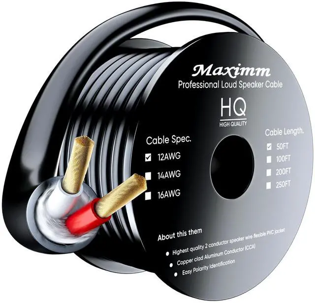 PROFESSIONAL QUALITY SPEAKER WIRE: Maximms professional grade 2-Conductor in wall speaker wire. Connect speakers to AV receivers and amplifiers for crystal clear clarity and maximum conductivity. ^^ 12